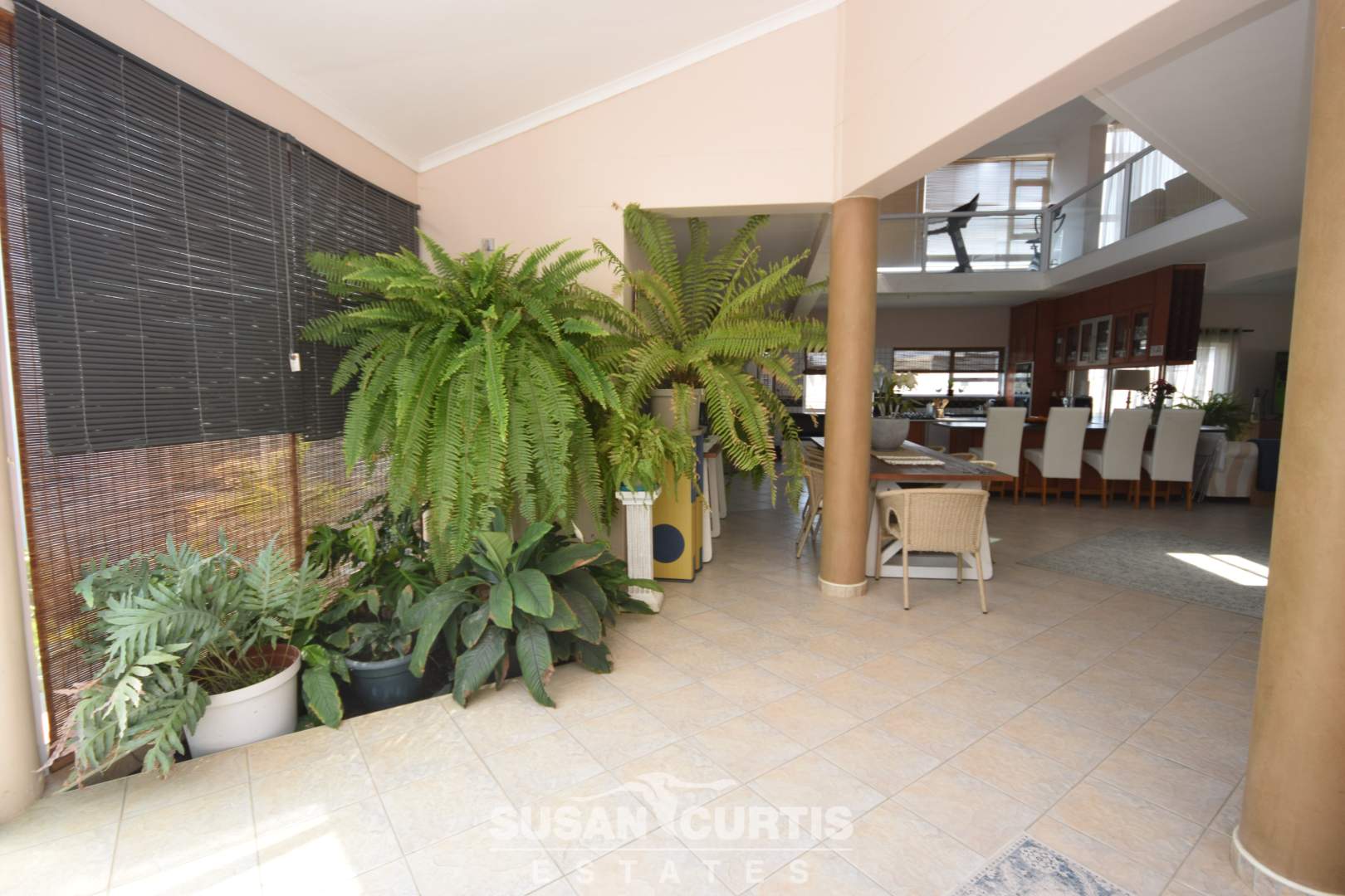 # The impressive entrance hall, with an inhouse garden, sets the tone for this magnificent house.