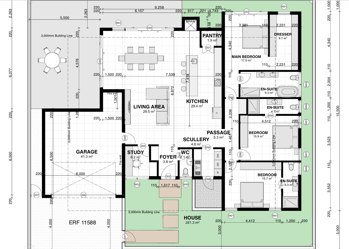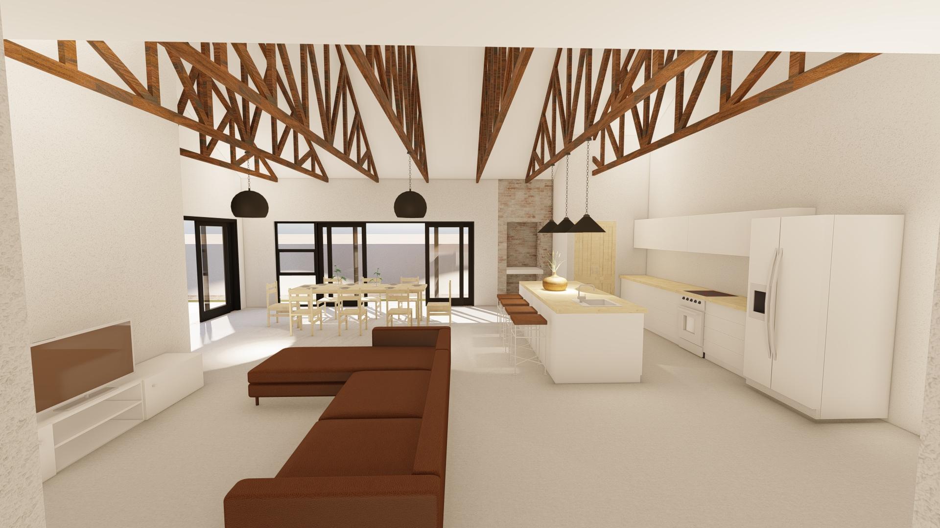 * Open-plan living area with indoor BBQ, providing for Dining and Lounge area.