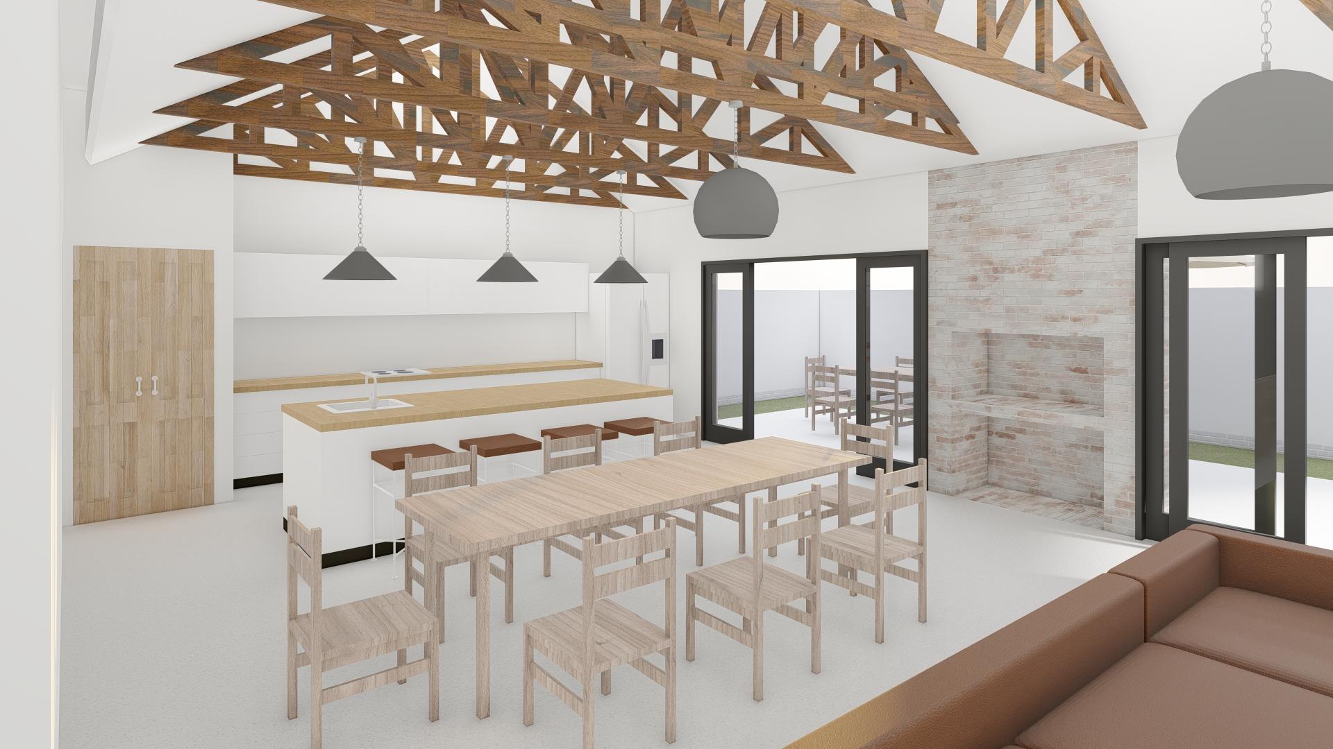 * Open-plan Living area with indoor BBQ, providing for Dining room & Lounge.