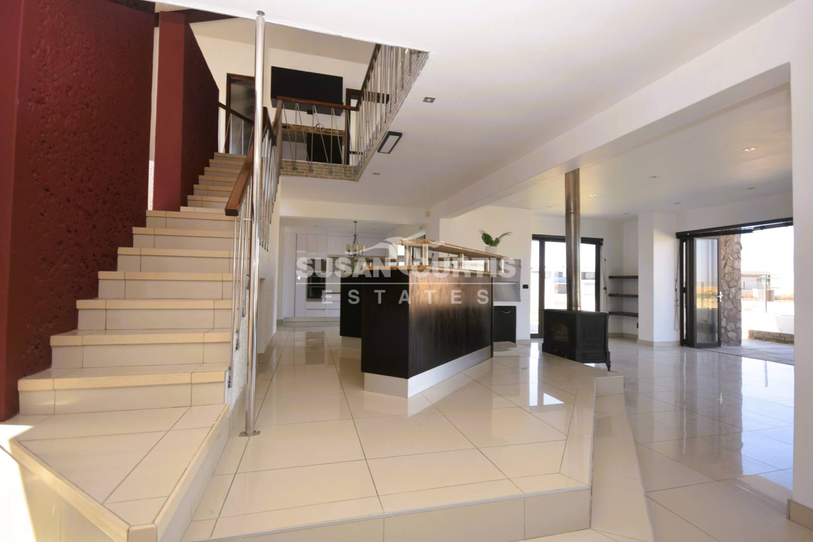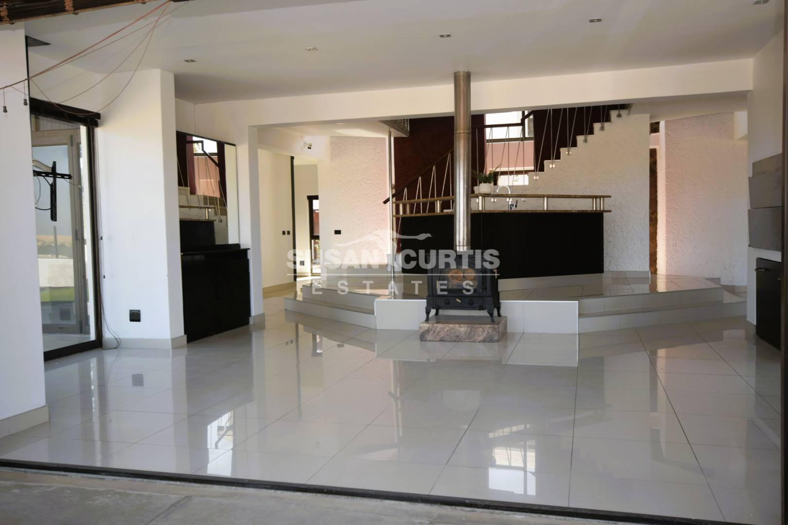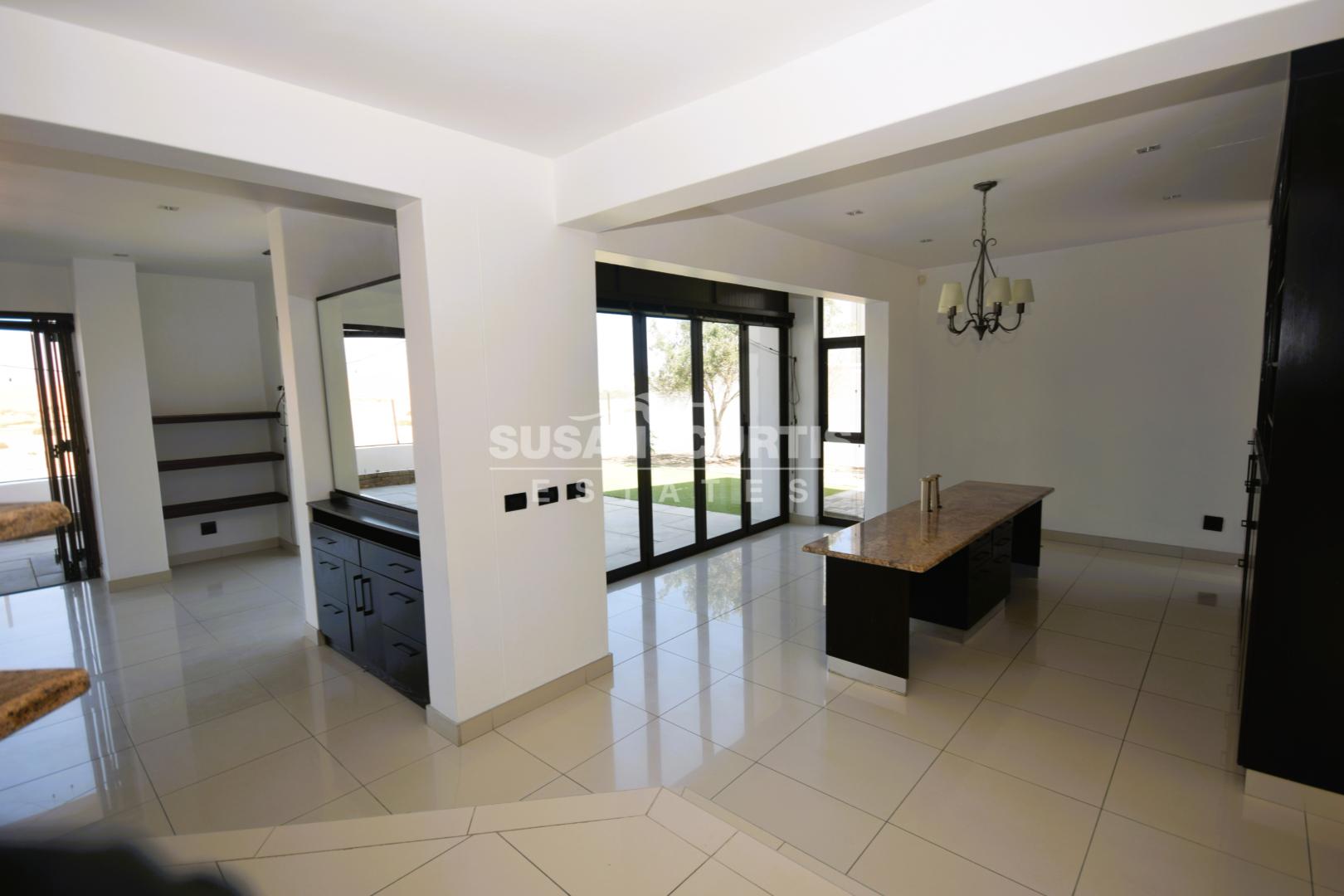 Open plan living dining, lounge, entertaining (with built in braai) - and kitchen (light and modern) areas