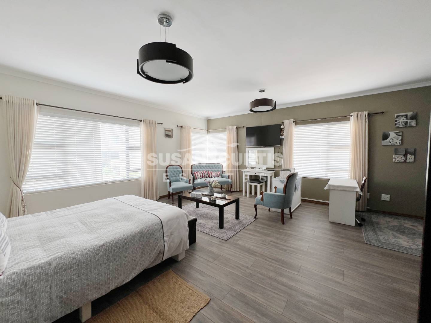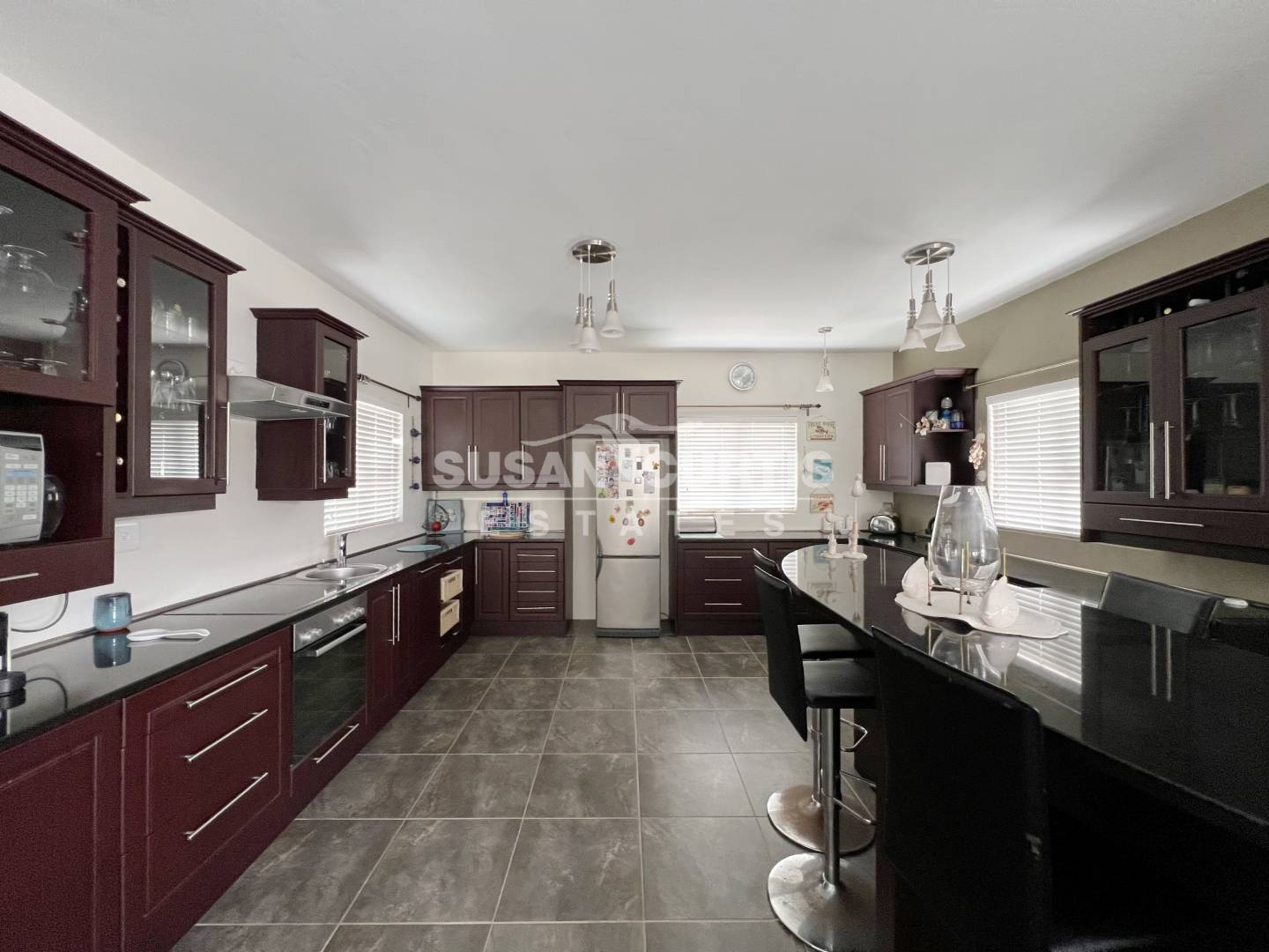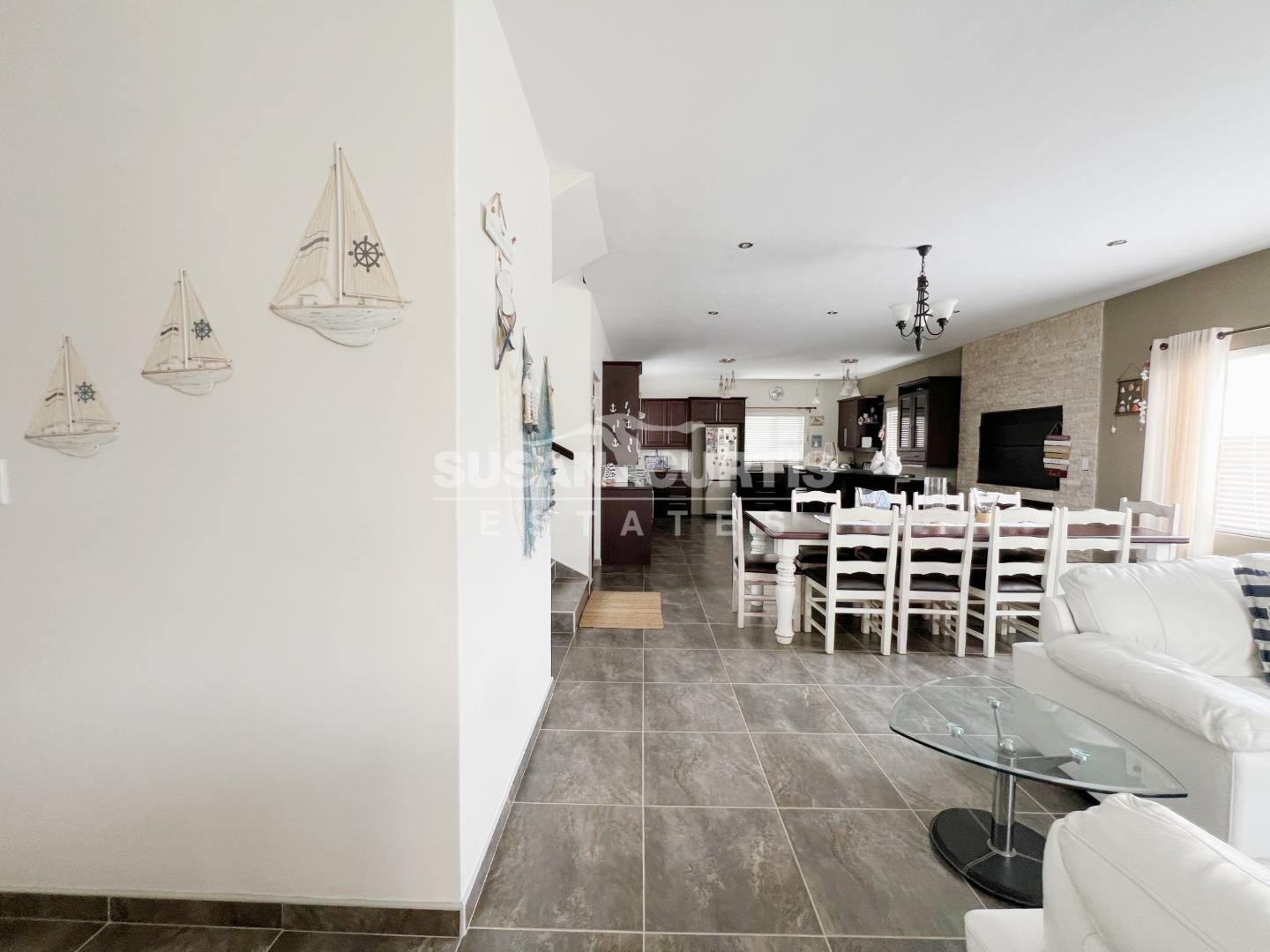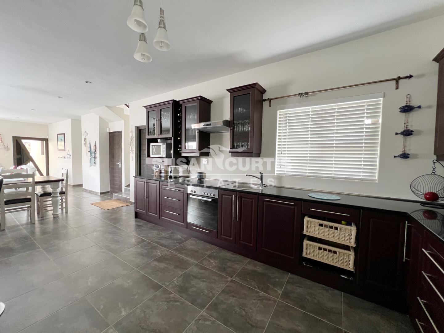 An open plan lounge and dining area create a welcoming living space, complemented by a well equipped kitchen with plenty of cupboard space. An indoor BBQ adds to the home’s entertainment appeal, while an additional storage room provides practical extra space.