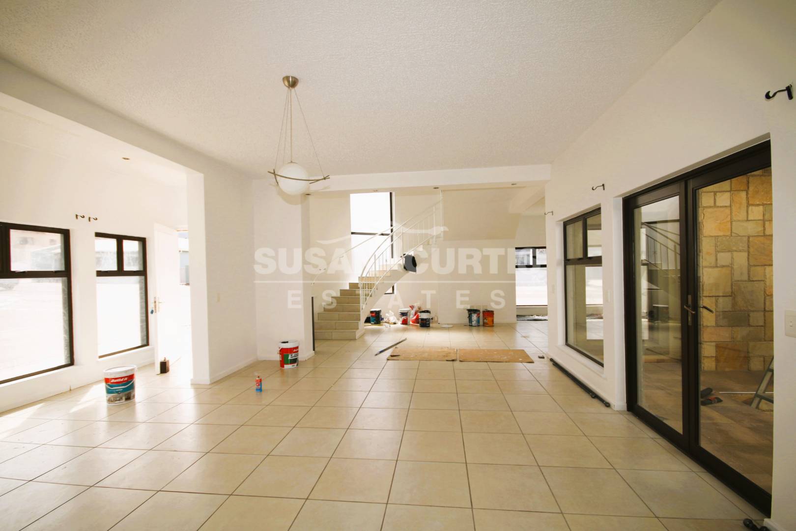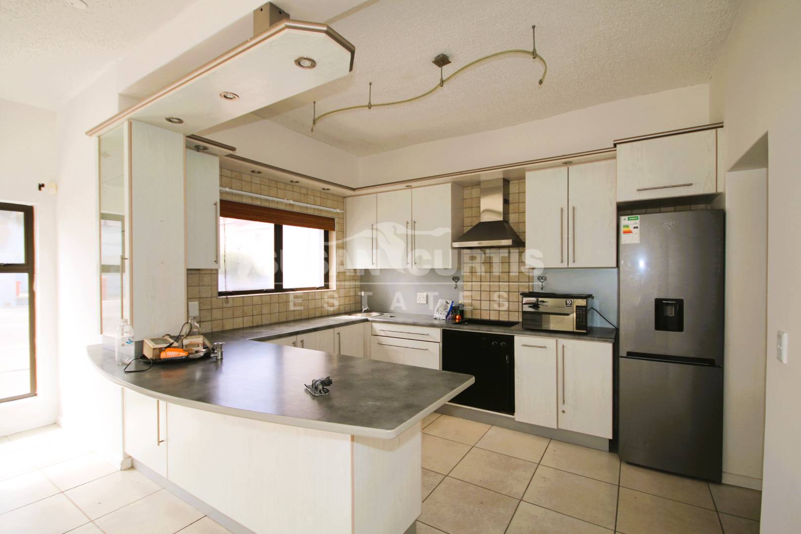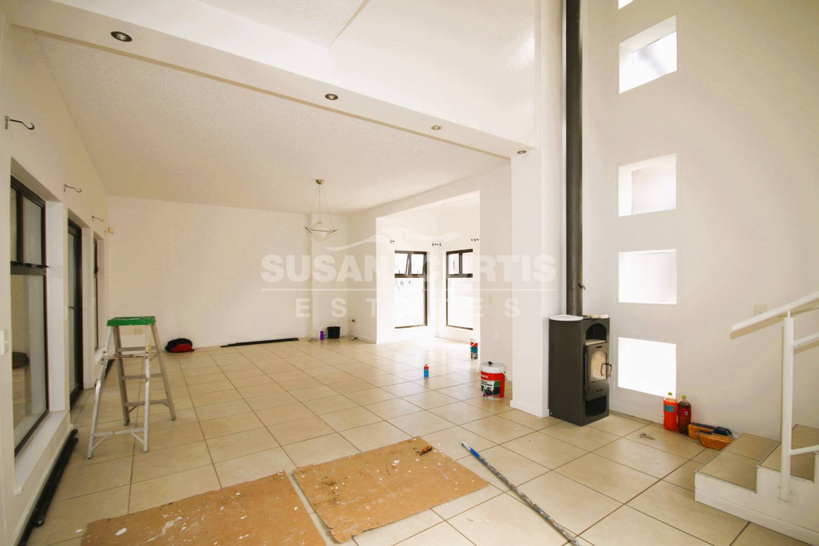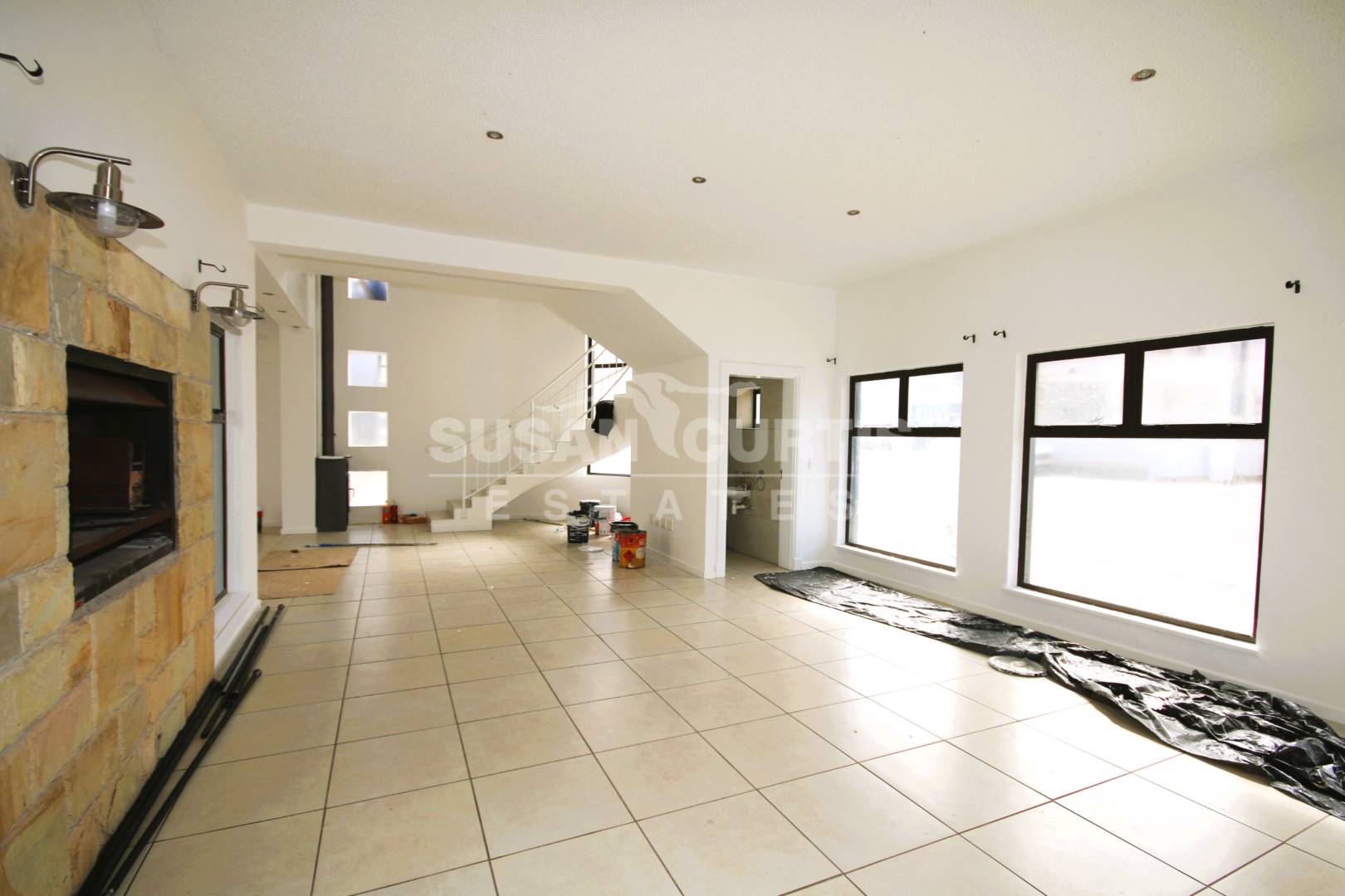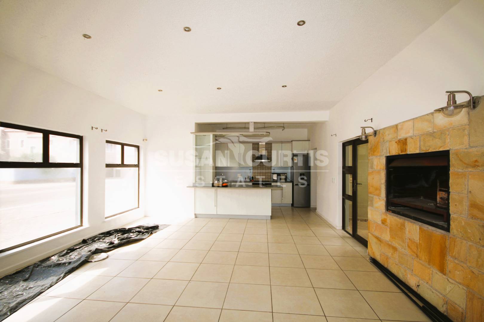 Open plan living and dining area with indoor BBQ, guest Toilet and kitchen with scullery