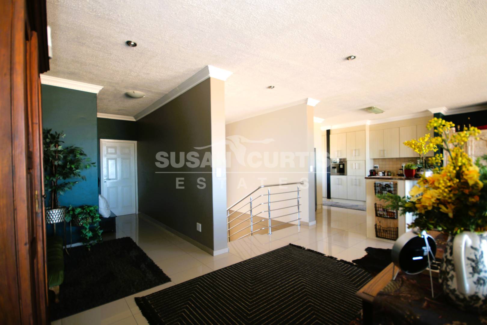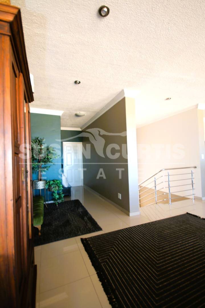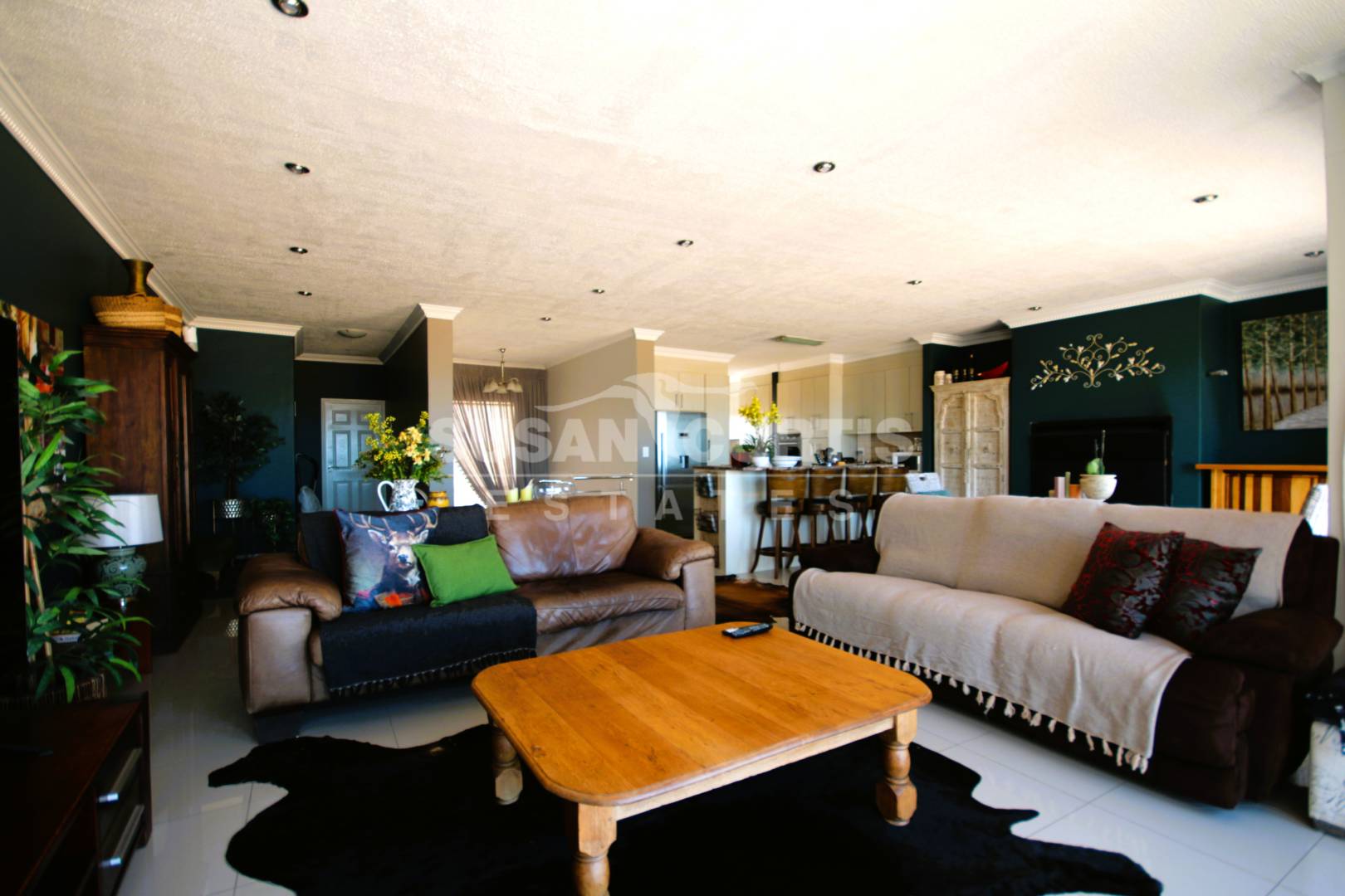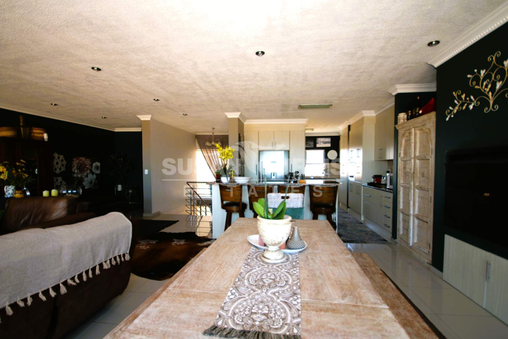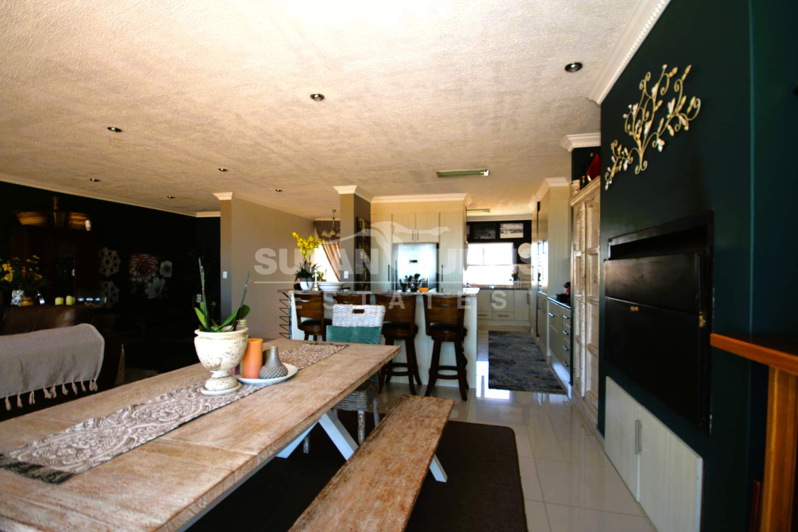 Big open plan living area with indoor BBQ, Kitchen with a scullery, a guest washroom and stunning sea view from the inside and outside on the balcony.