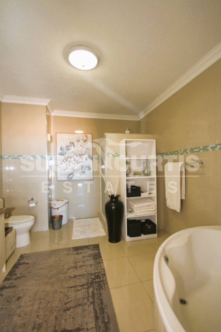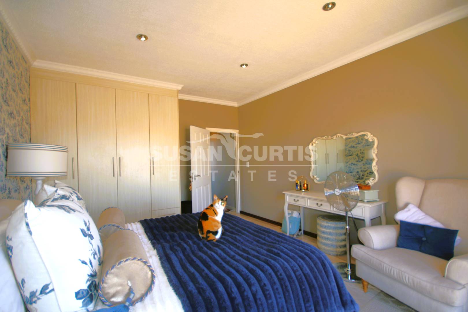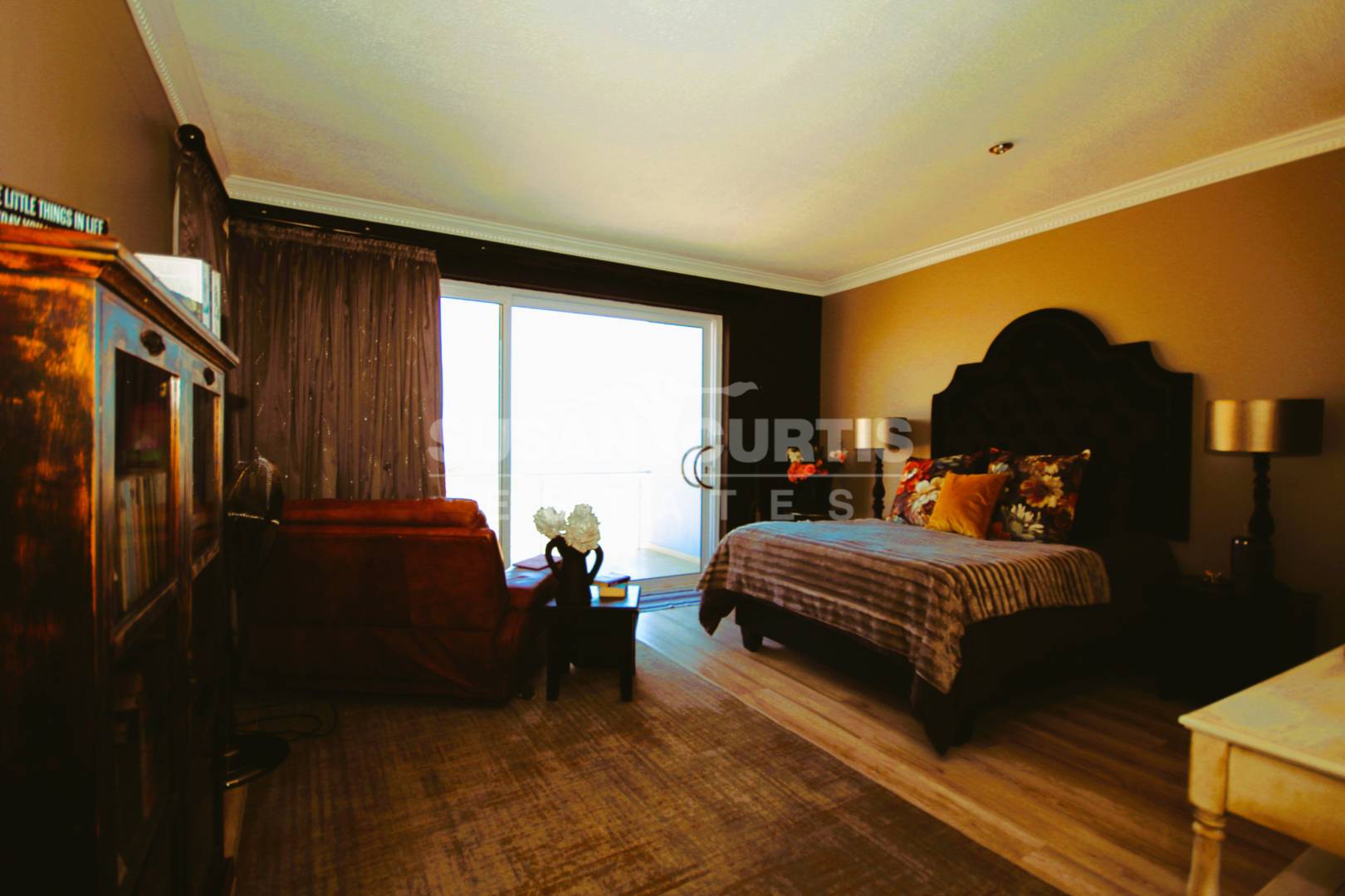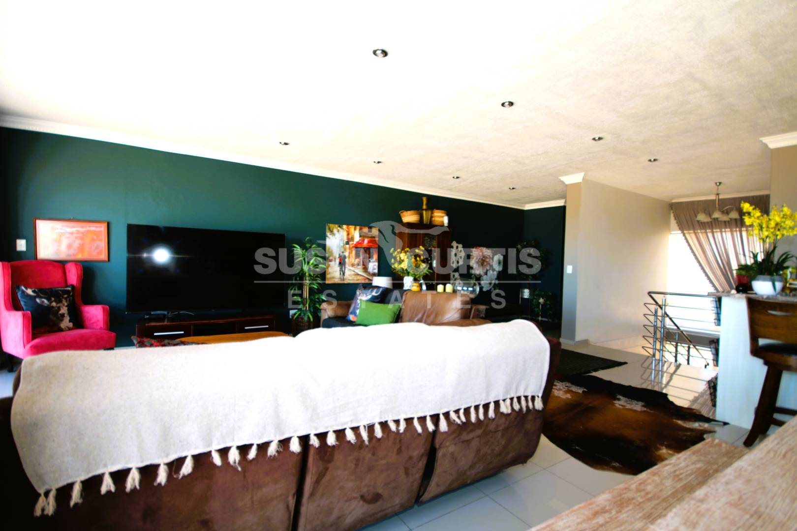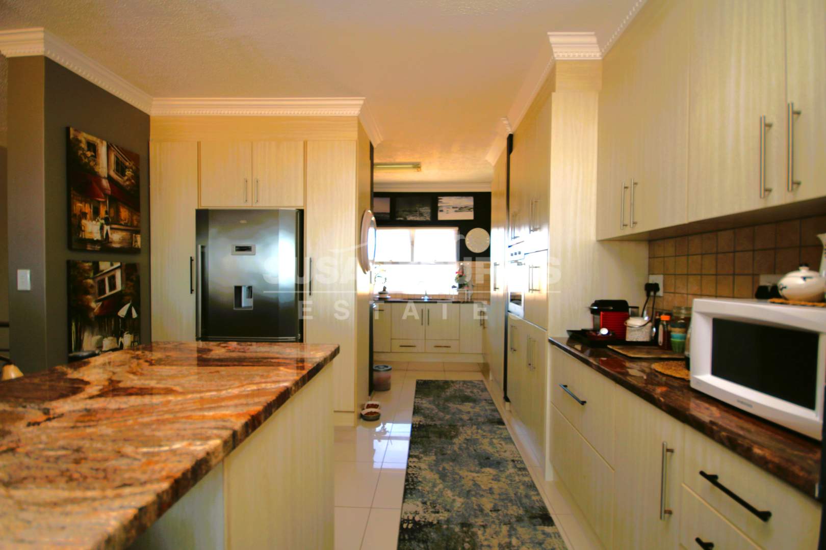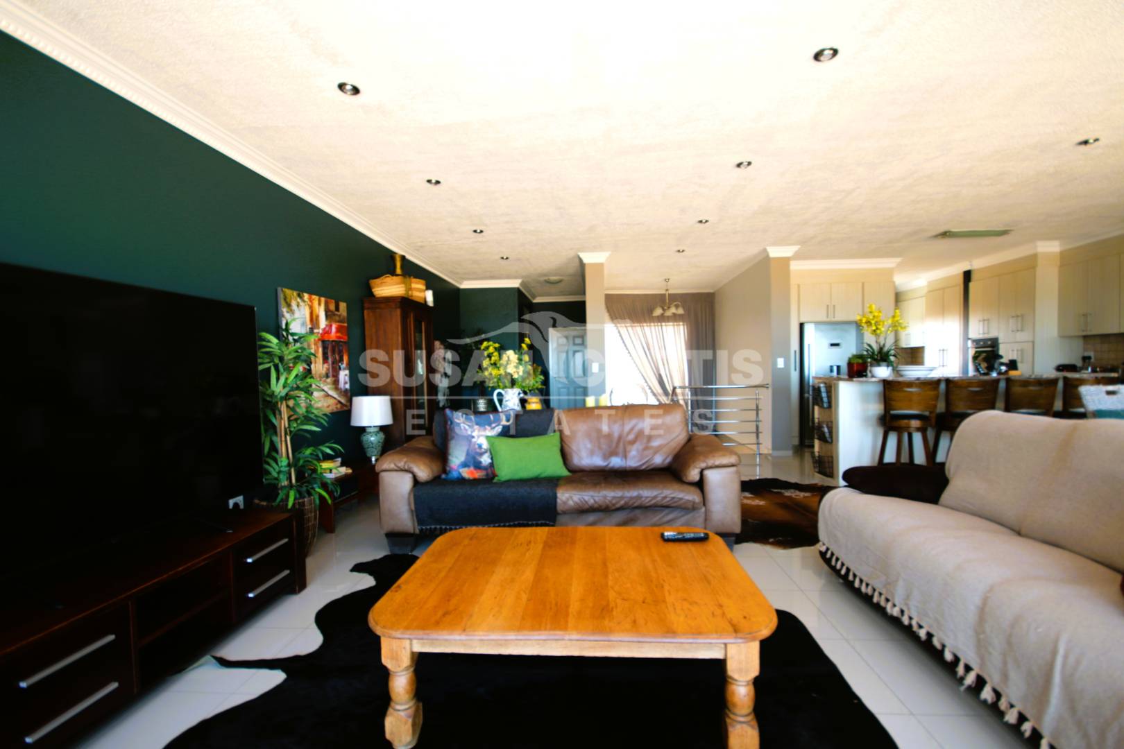 Big open plan living area with indoor BBQ, Kitchen with a scullery, a guest washroom and stunning sea view from the inside and outside on the balcony.