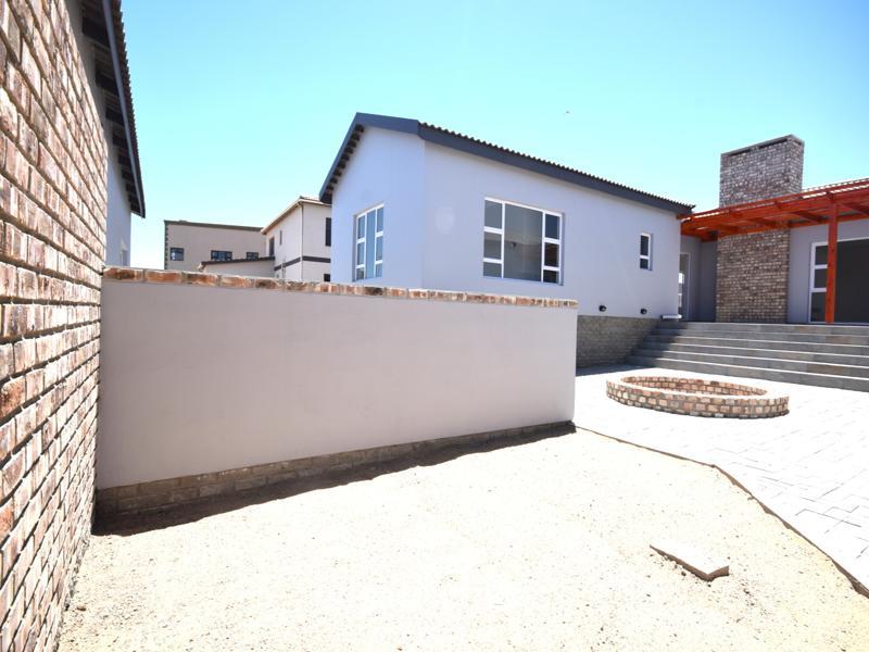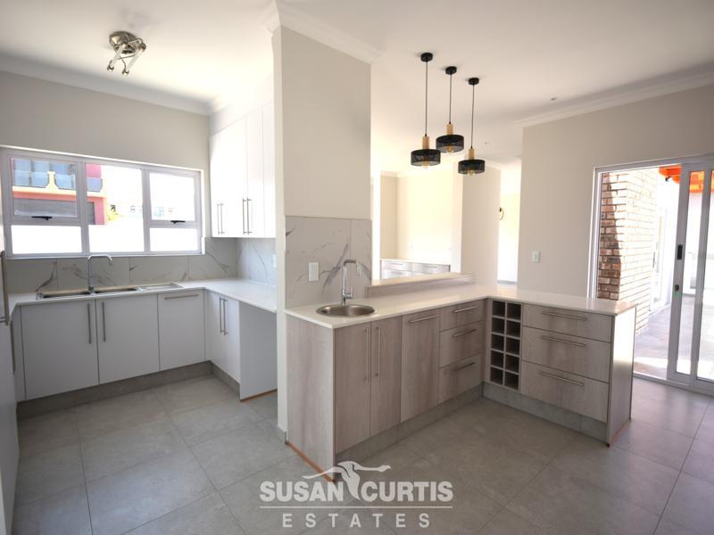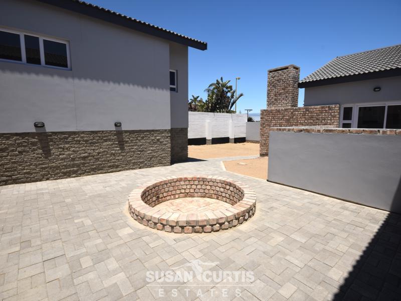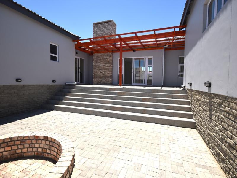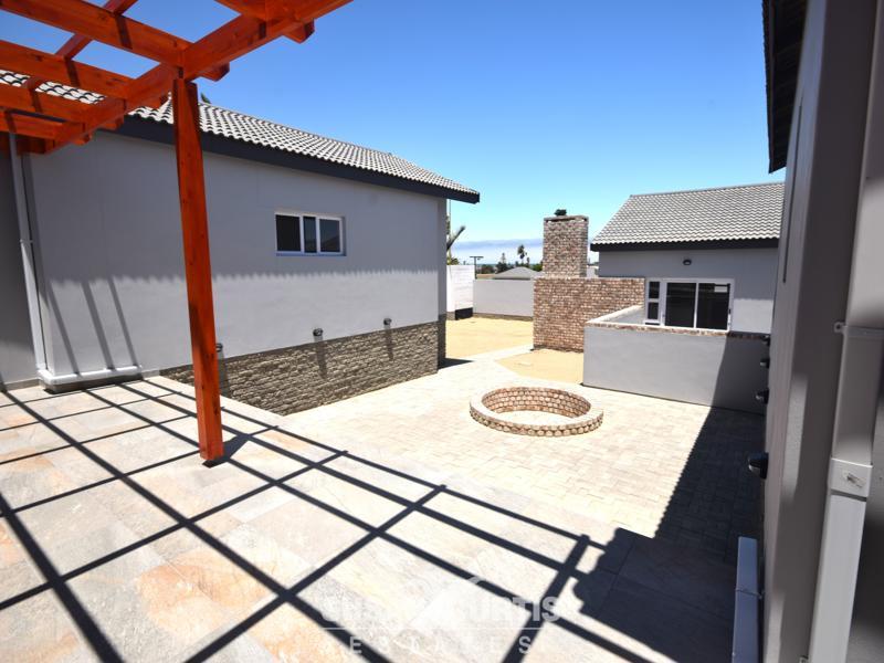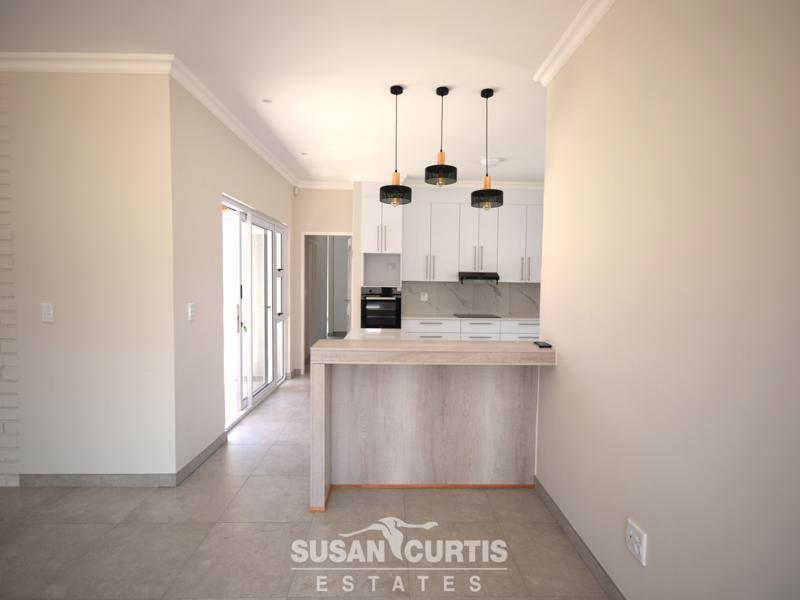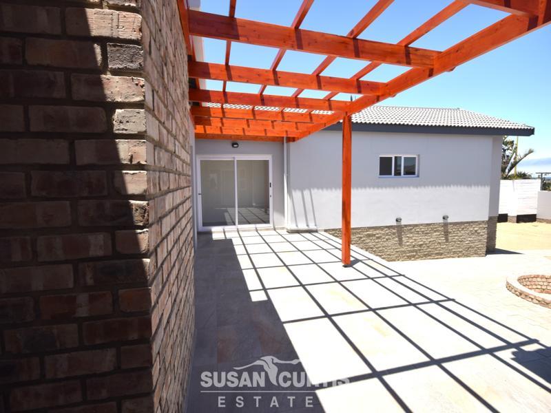 # Bright Living area and dining, with large windows and sliding doors leading to a pergola patio and boma area.
