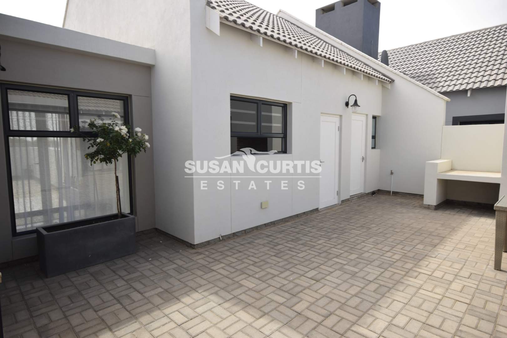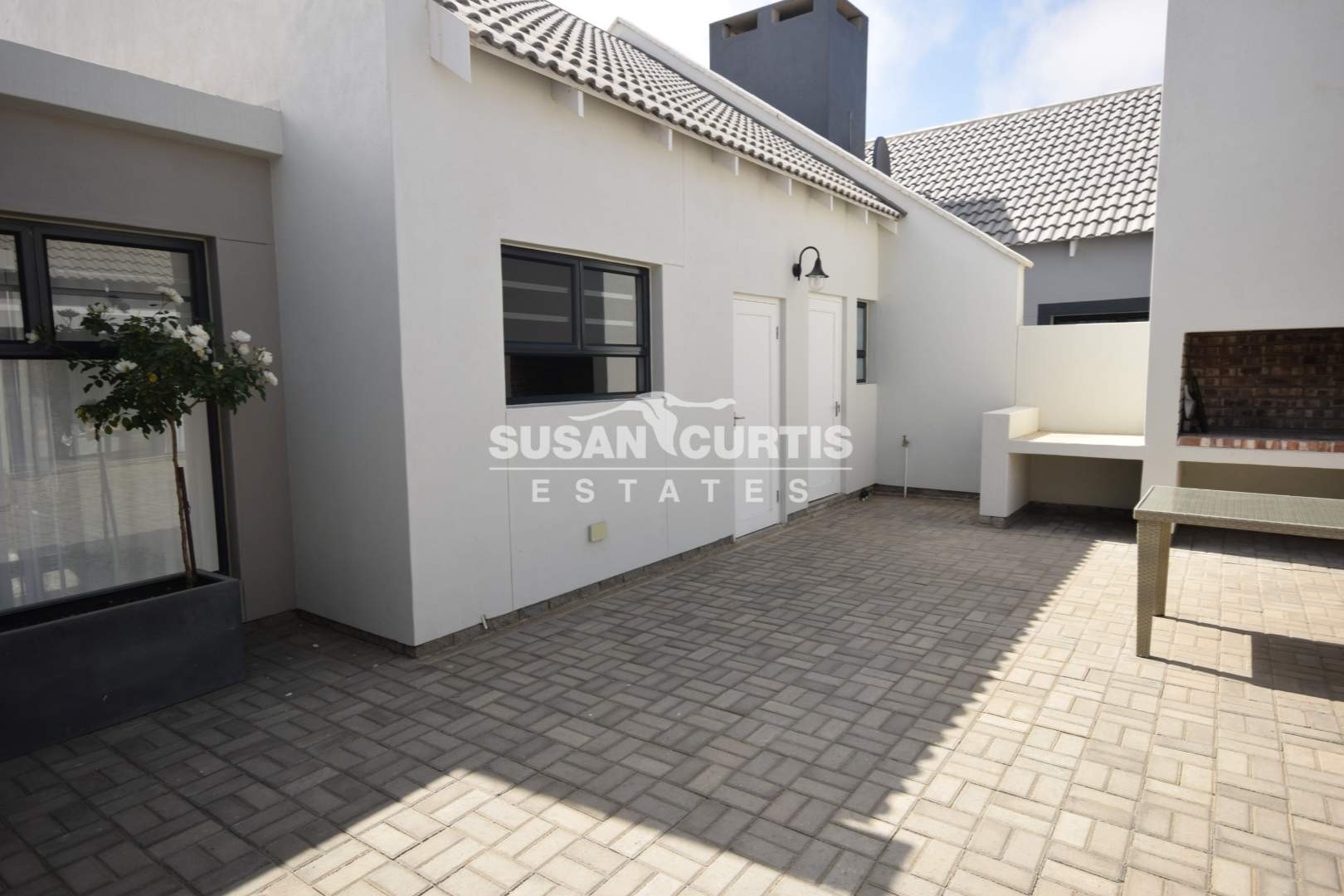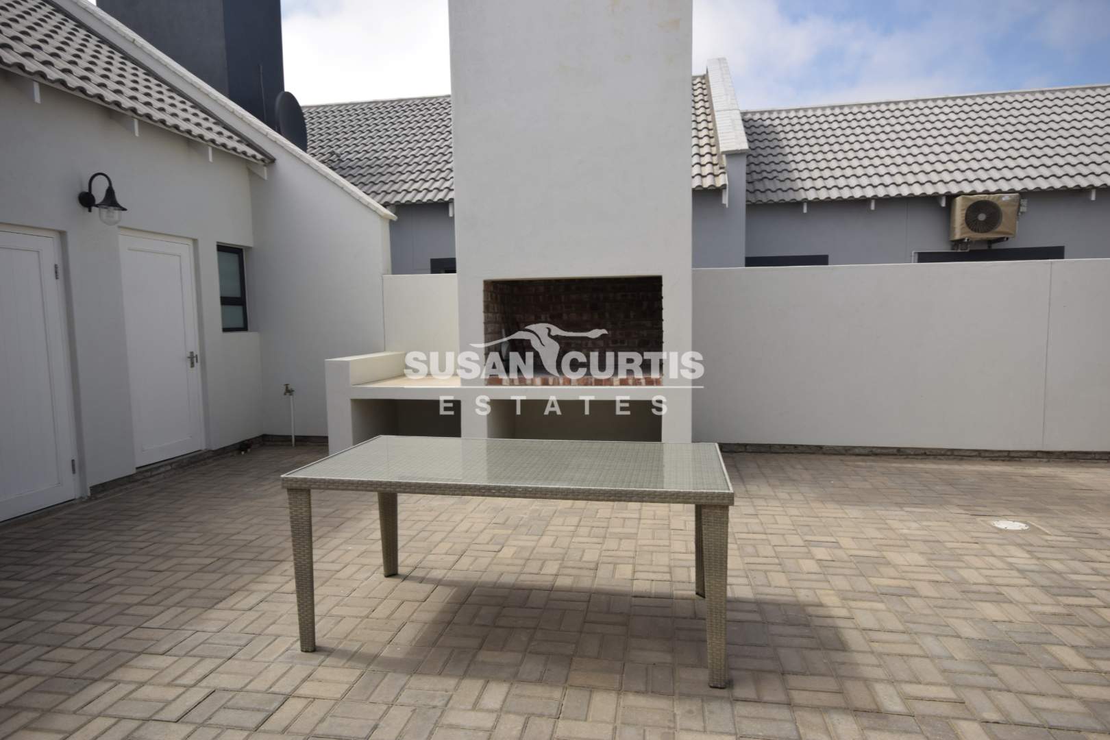 # Sliding door opens up to a large wind protected entertainment area/Patio