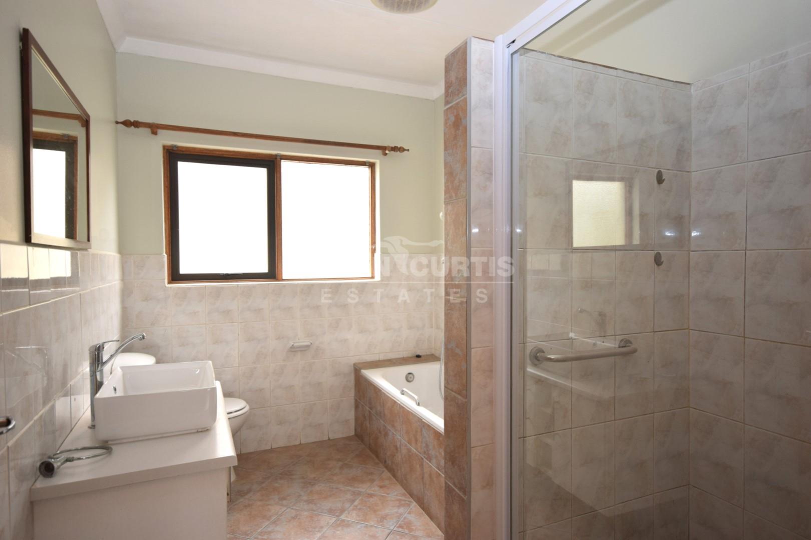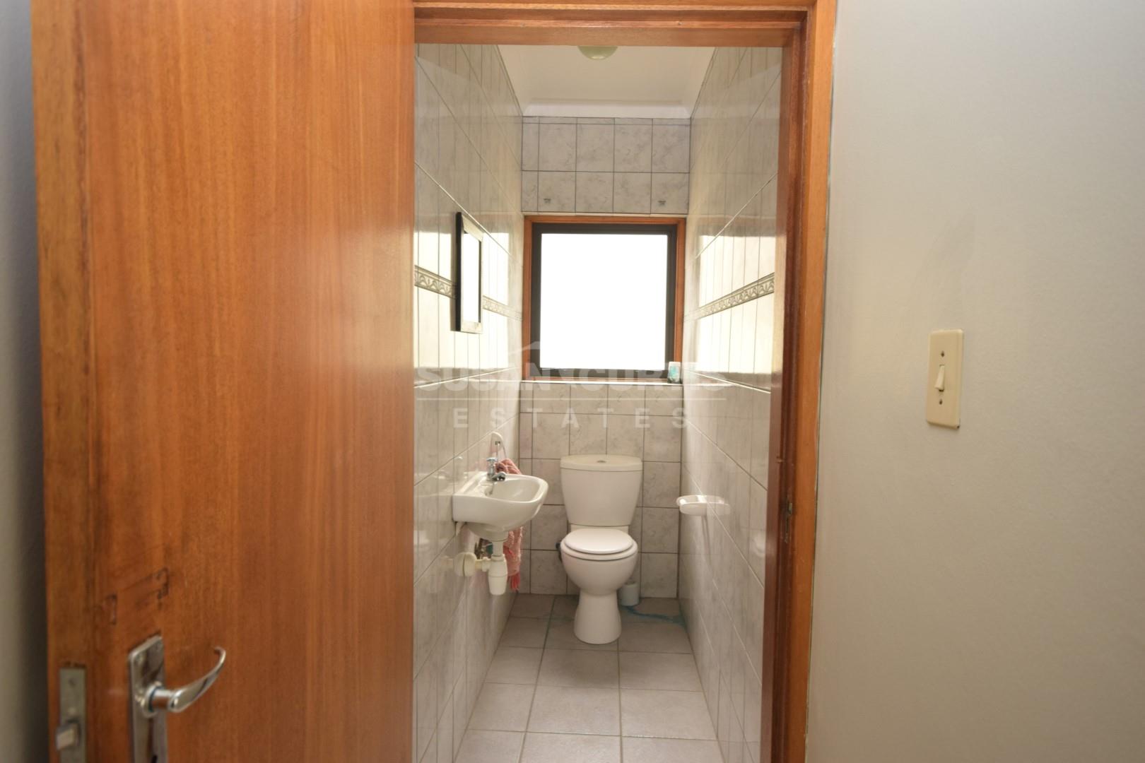 The property boasts three bedrooms. The main bathroom is complemented by an additional guest toilet, ensuring convenience for residents and visitors alike.